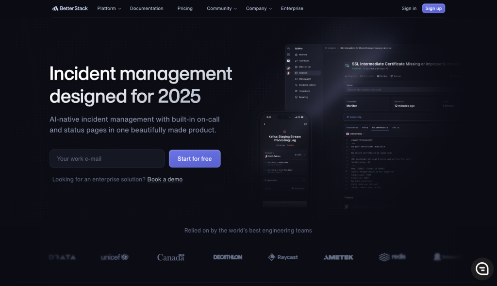 Better StackAll-in-one monitoring and incident managementStartups and SMBsStarts at $29/month