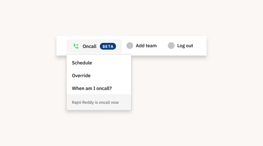 Users can view their on-call schedules by clicking on “when am I on call?” Inside the on-call dropdown present on the header. The dropdown also mentions who is On-call which enables everyone to figure out the current on-call member.