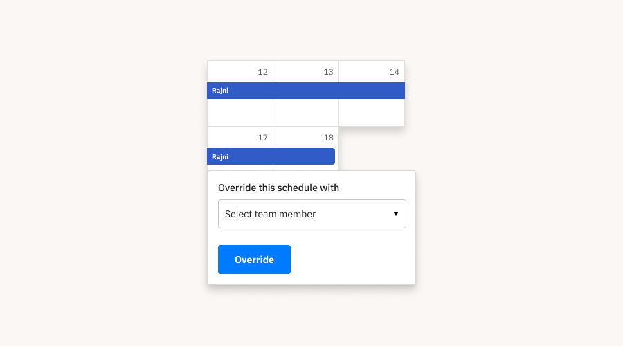 In some instances the present on-call members might not be available to respond to incidents, they might be on leave or a vacation. To solve this problem, Spike lets you swap the existing shifts between members, i.e overriding. Overriding allows modifying the schedule without altering it as a whole.