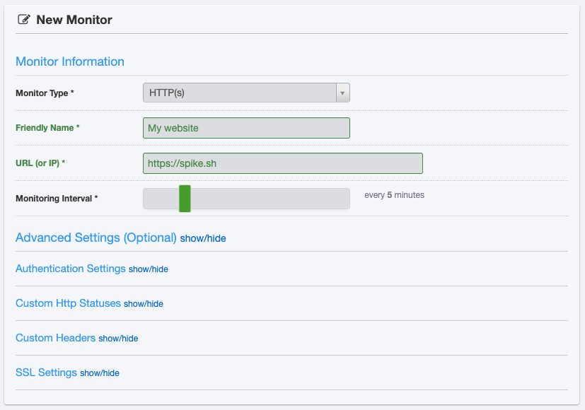 - Monitoring interval: The frequency of checking your website e.g. every 5 minutes.