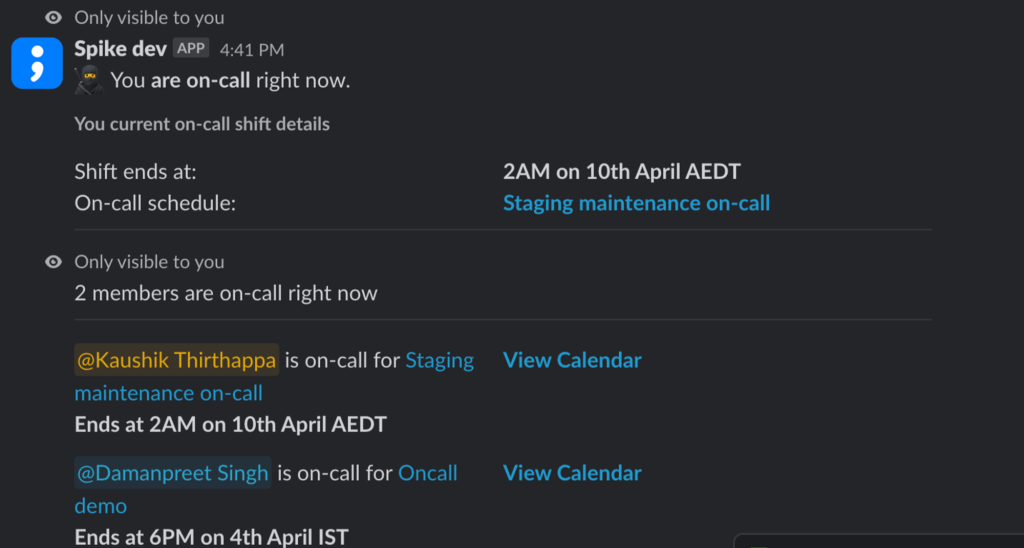 - Operational Commands: Slash commands allow you to manage tasks like viewing oncall schedules, identifying who’s oncall, and receiving oncall alerts.