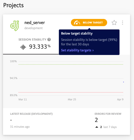 You can set stability targets and see trends of how your team is performing against the targets.