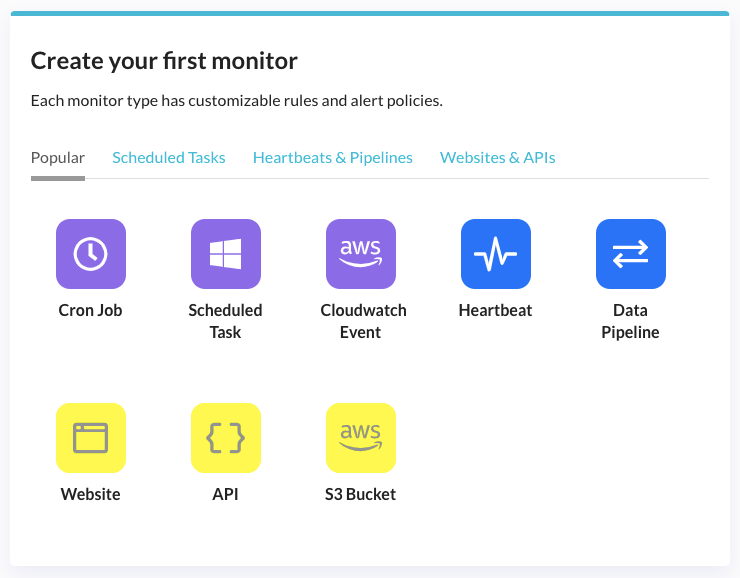 Sign up for a new account on Cronitor and select Cron job from the Create Monitor screen.