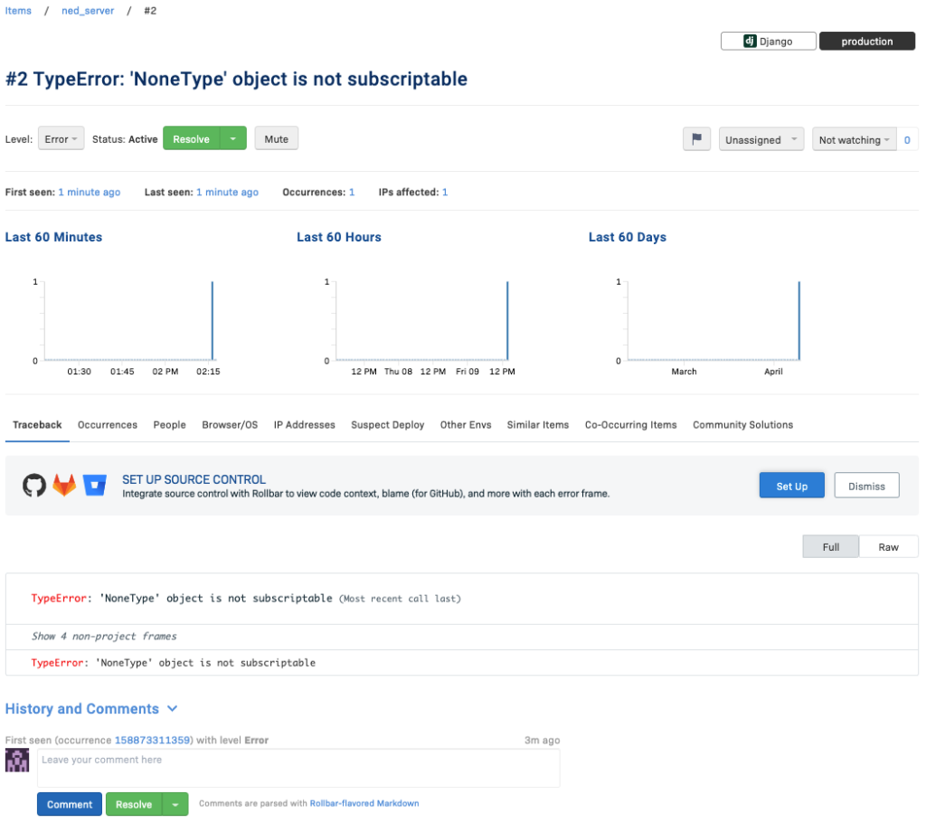 You can work with your team to fix errors by adding comments to errors in Rollbar. You can reference other team members inside comments, and decide whether you want to be notified for all changes or only if you are directly mentioned in the comments.