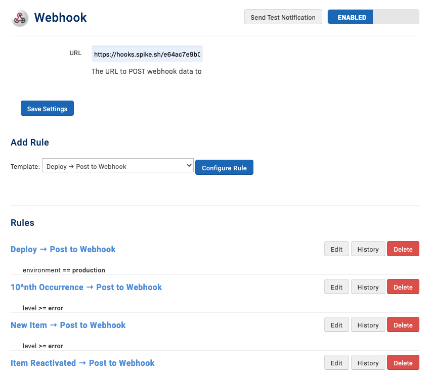 Rollbar allows you to configure rules to decide how and when alerts should be sent to other tools like Spike.sh.