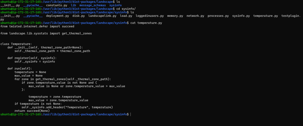 After a bit of digging, I discovered that the temperature was actually fetched using the bin. Following the trail, I was directed to check /usr/bin/landscape-sysinfo. That, in turn, led to /usr/bin/python3/ dist-packages/landscape/sysinfo. Inside, a bunch of Python scripts were found and buried among them was temperature.py.