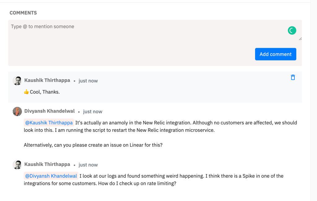 Commenting on integrations was a bold move for us because we always imagined that users would tackle all collaboration for an incident on Slack or Microsoft Teams but that kinda forces the notion of urgency. Besides chat disappears after a while.