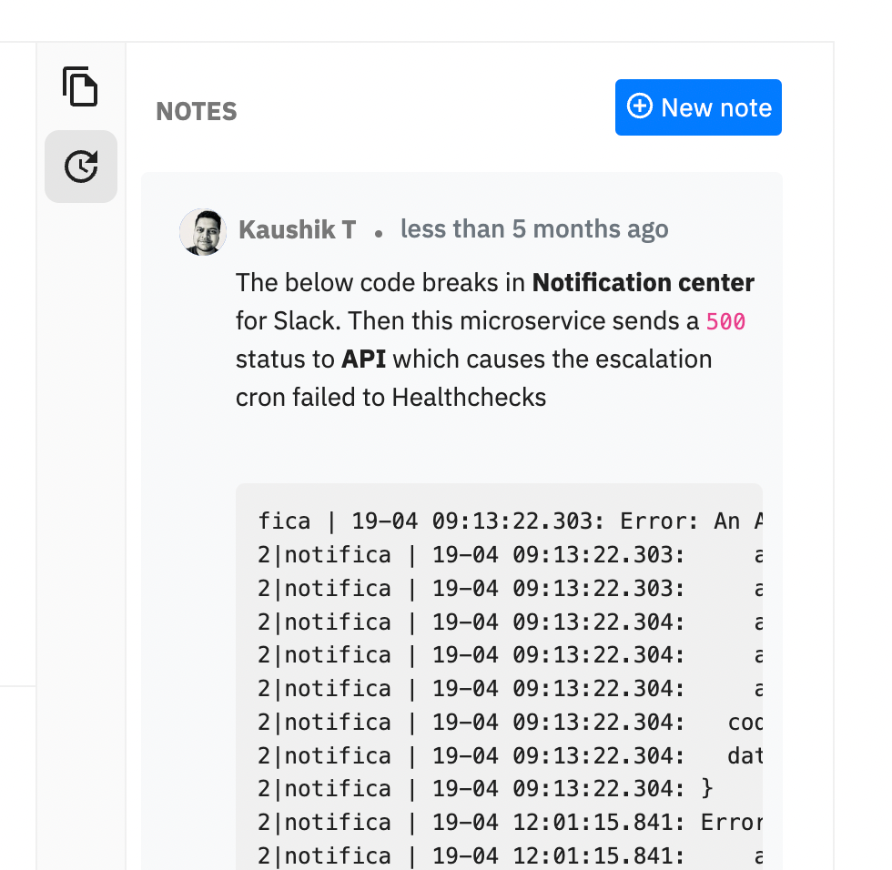 Notes will be perpetual to an incident and so would comments. This way when the incident triggers or repeats again, responders will have better context.